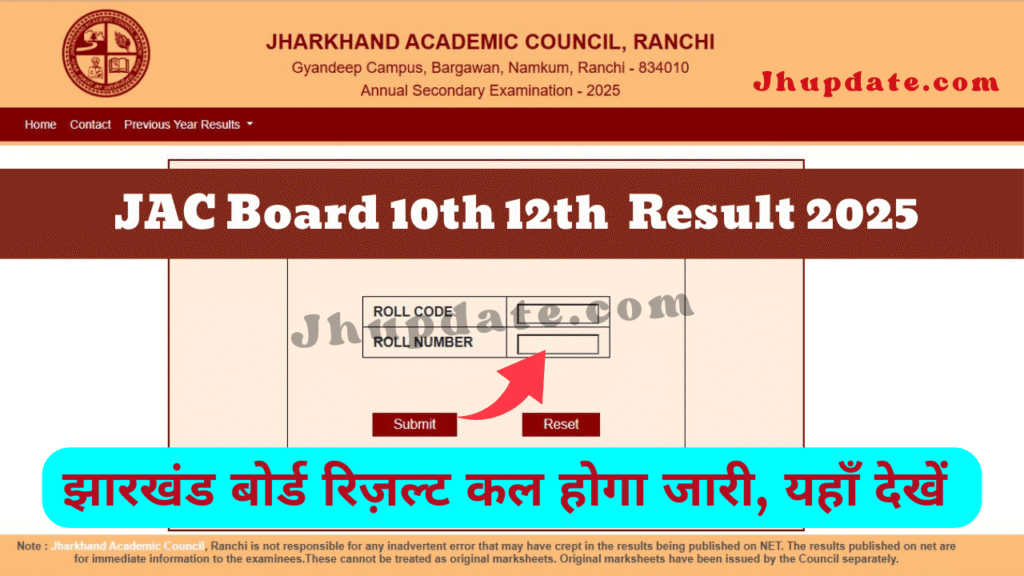 JAC 10th 12th Result 2025: झारखंड बोर्ड मैट्रिक और इंटरमीडिएट परीक्षाओं में भाग लेने वाले लाखों छात्रों के लिए बड़ी खबर! मीडिया रिपोर्ट के अनुसार, झारखंड एकेडमिक काउंसिल (JAC) की ओर से Jharkhand Board 10th 12th Result 2025 कल किसी भी समय जारी किया जा सकता है।